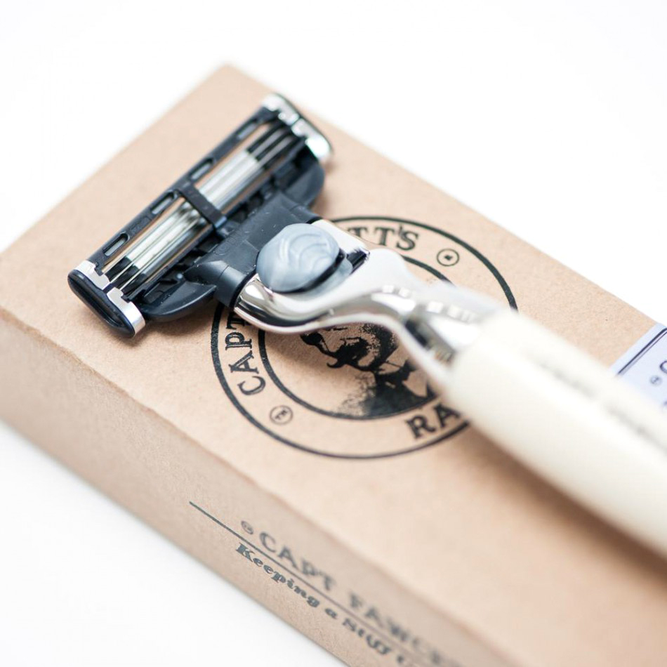 - Още едно изобретение на прочутата Едуардианска ера, изцяло актуализирано с представянето на тази красиво изработена самобръсначка - любимият безопасен бръснач на Капитана.