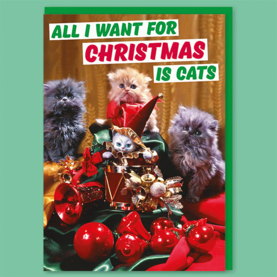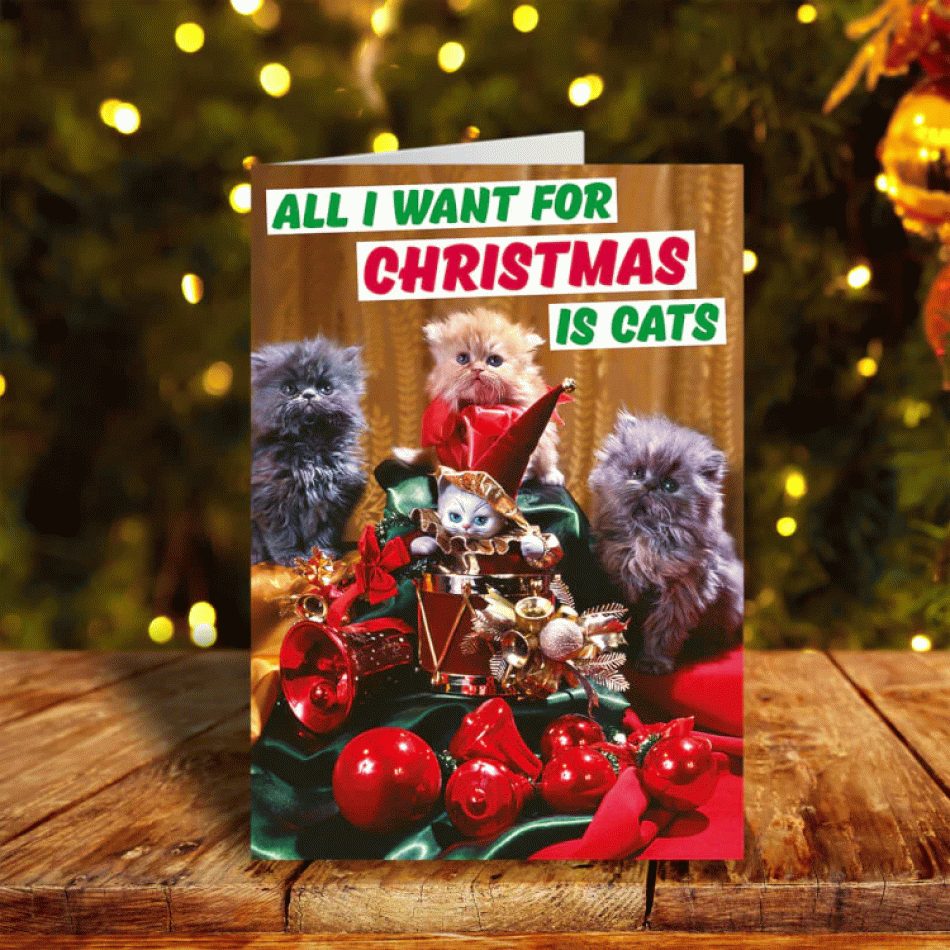 Поздравителна картичка - Всичко, което искам за Коледа, е КОТКИ!