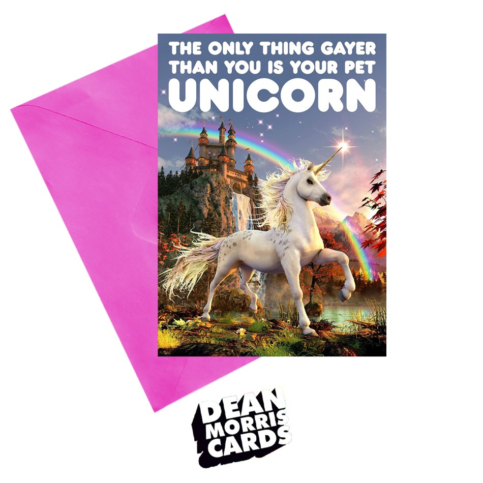 Копирайт: Dean Morris Cards Понякога няма какво друго да добавим на Коледа, освен искреност, а какво по-искрено от картичка, която гласи "Единственото по-гей нещо от теб, е твоят еднорог за домашен любимец"!
