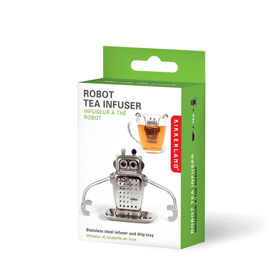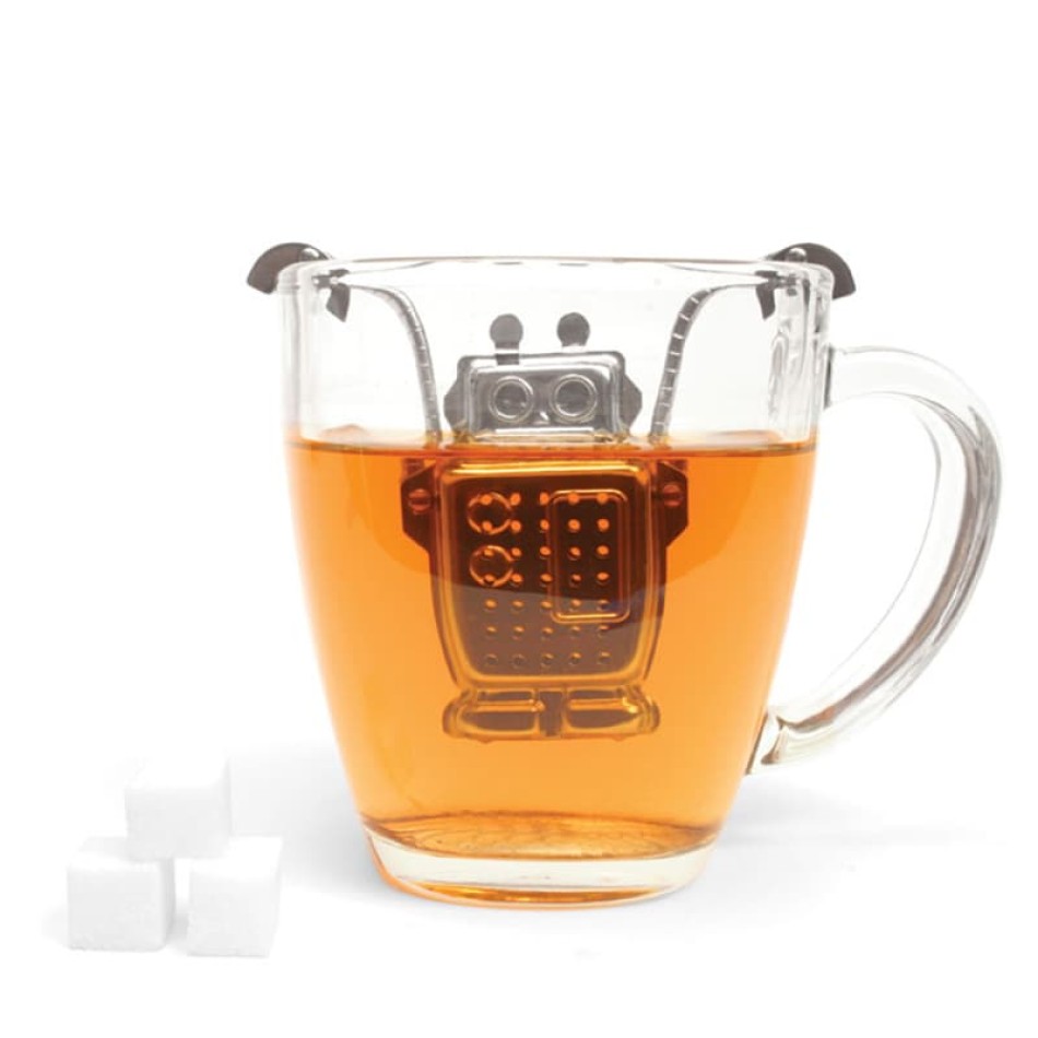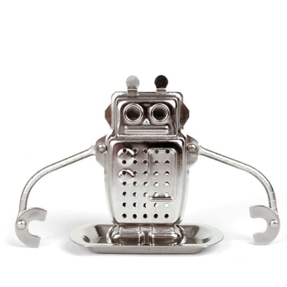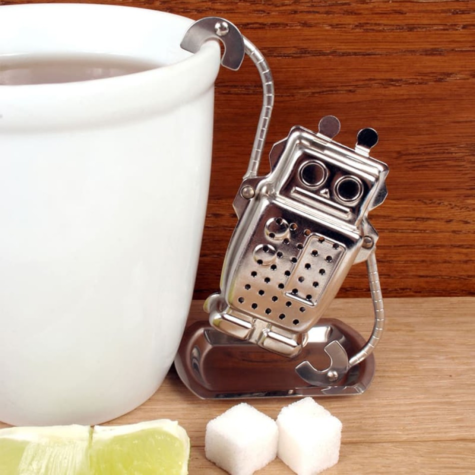 Това неръждаемо стоманено създание е като миниатюрен приятел в кухнята: отваря се лесно, пълни се с любимите ви билки или листа, захваща се здраво за ръба на чашата и след запарване – ръчичките се прибират, а роботчето каца на включената чинийка, за да не капе навсякъде. Компактно, здраво, лесно за почистване и готово за ежедневни приключения – идеален подарък за чайни маниаци, офис колеги или всеки, който обича нещата с душа и метален блясък.