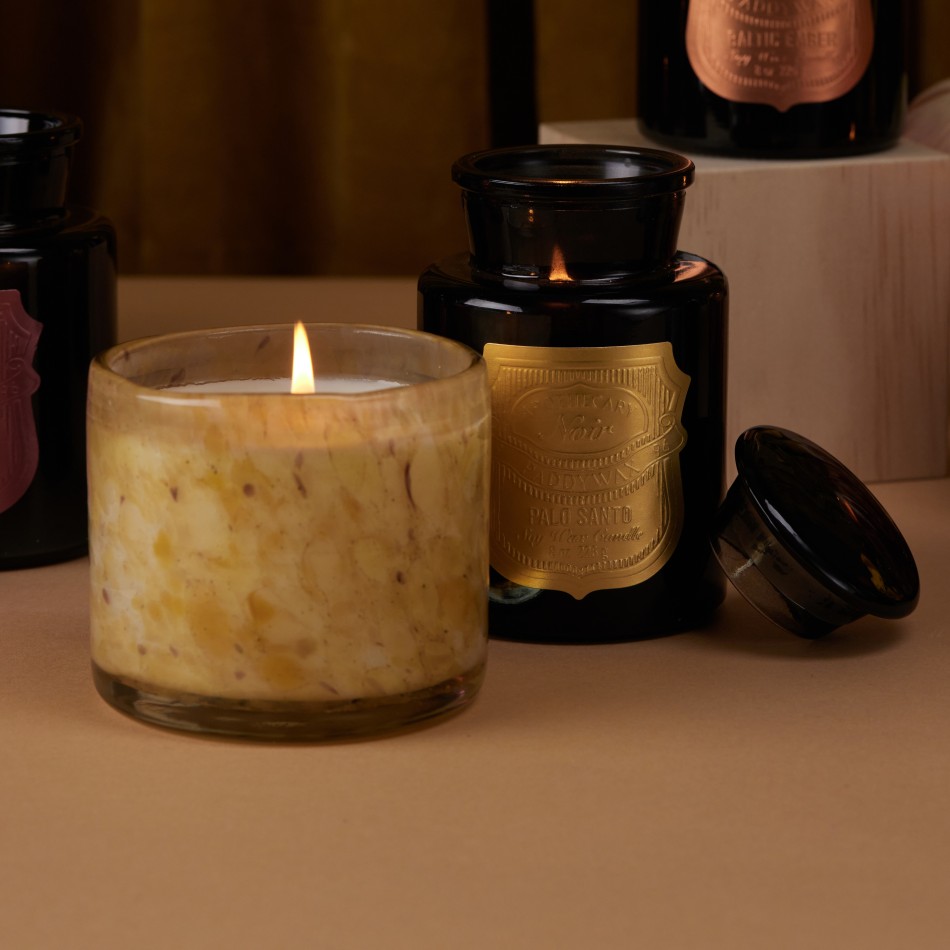 Копирайт: © Designworks Collective Company - Представяме ви аптекарската серия на Paddywax в черна гама и изтънчен дизайн върху нашата тяхната свещ. Със същата емблематична форма на бутилка от аптека от стария свят, Noir носи допълнителна доза винтидж стил с мастилено черно оцветено стъкло и щамповани метални етикети. Насладете се на луксозния аромат на свещта Apothecary Noir - Palo Santo, предназначена да излъчва кехлибарено сияние, за да зададе тона във вашето настроение.Връхни нотки: розов пипер, бергамот, карамфил, шафранСредни нотки: черна кожа, джинджифил, кедрови листа, смола ElemiБазови нотки: Тъмен дъб, Агарово дърво, Гуаяк, Бурлдър, КейдСоевите свещи на Paddywax се изработват от естествена растителна восъчна основа на висококачествена виетнамска соя, която гори несравнимо по-чисто и не отделя вредни вещества. Освен това соевите ни свещи горят значително по-дълго и разпръскват аромата чувствително по-равномерно от масовите свещи с парафин. Падивакс е един от водещите брандове в света на бутиковите соеви свещи и сме горди да бъдем техните дистрибутори за България.