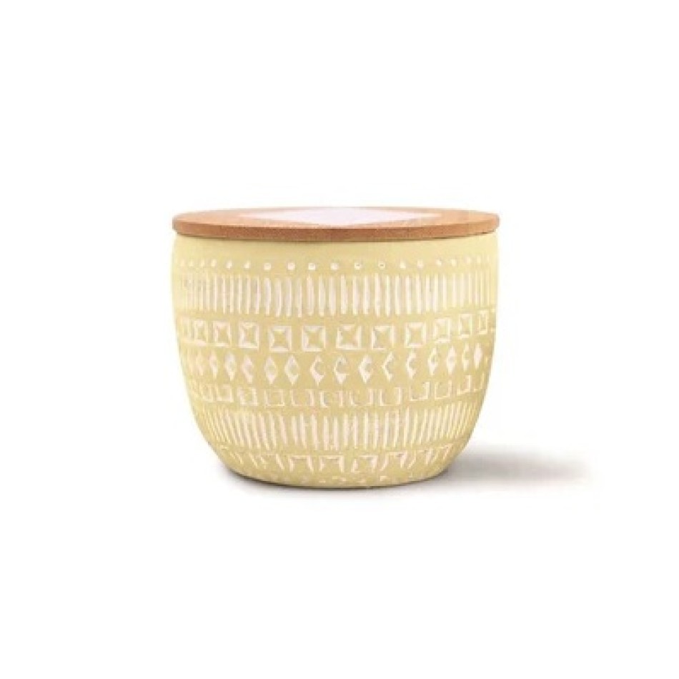 Копирайт: © Designworks Collective Company Насладете се на тази жизнерадостна Ароматна соева свещ от бетон Падивакс Сонора 283 гр - жълта - свеж лимон от колекцията Sonora. Ръчно ецваният и боядисан бетонен съд в слънчев жълт нюанс излъчва топлина и свежест, увенчан с естествен дървен капак за пълна хармония.