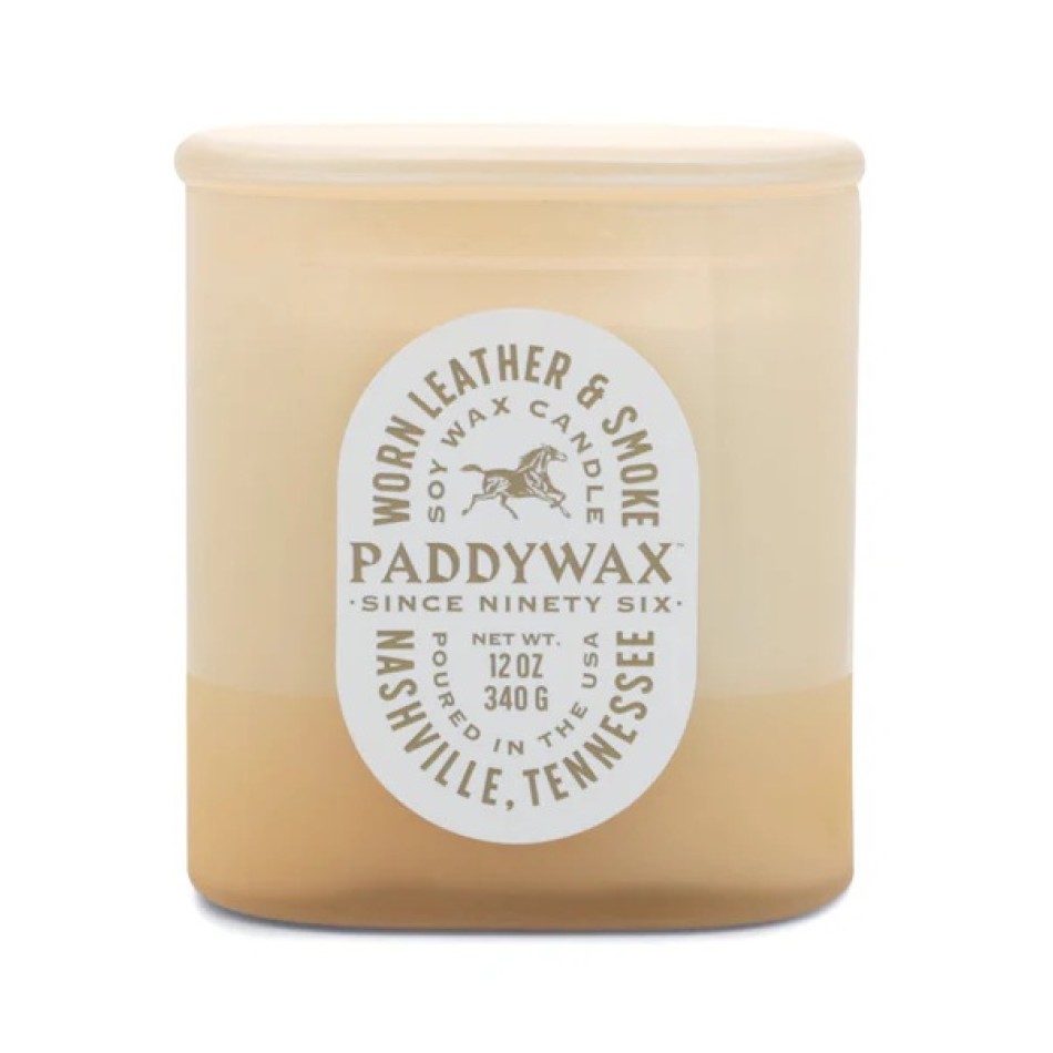 Ароматна соева свещ Падивакс Виста в стъкленица - износена кожа и дим