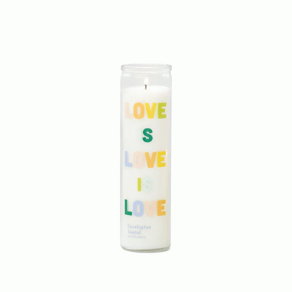 Копирайт: © Designworks Collective Company Изразете усещане за приемане и светлина с тази вдъхновяваща Ароматна соева свещ Падивакс Искра 300 гр - Любовта е любов е любов - евкалипт и сандалово дърво. В стилен прозрачен стъклен съд, пълен с цветен восък и украсен с надпис „Love Is Love Is Love“, тя носи посланието, че любовта е универсална.