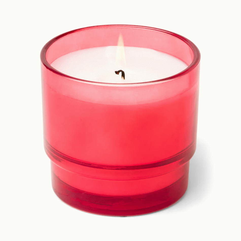 Ароматна соева свещ Падивакс Al Fresco - стъклена чаша за червен сок - розово дърво и ванилия