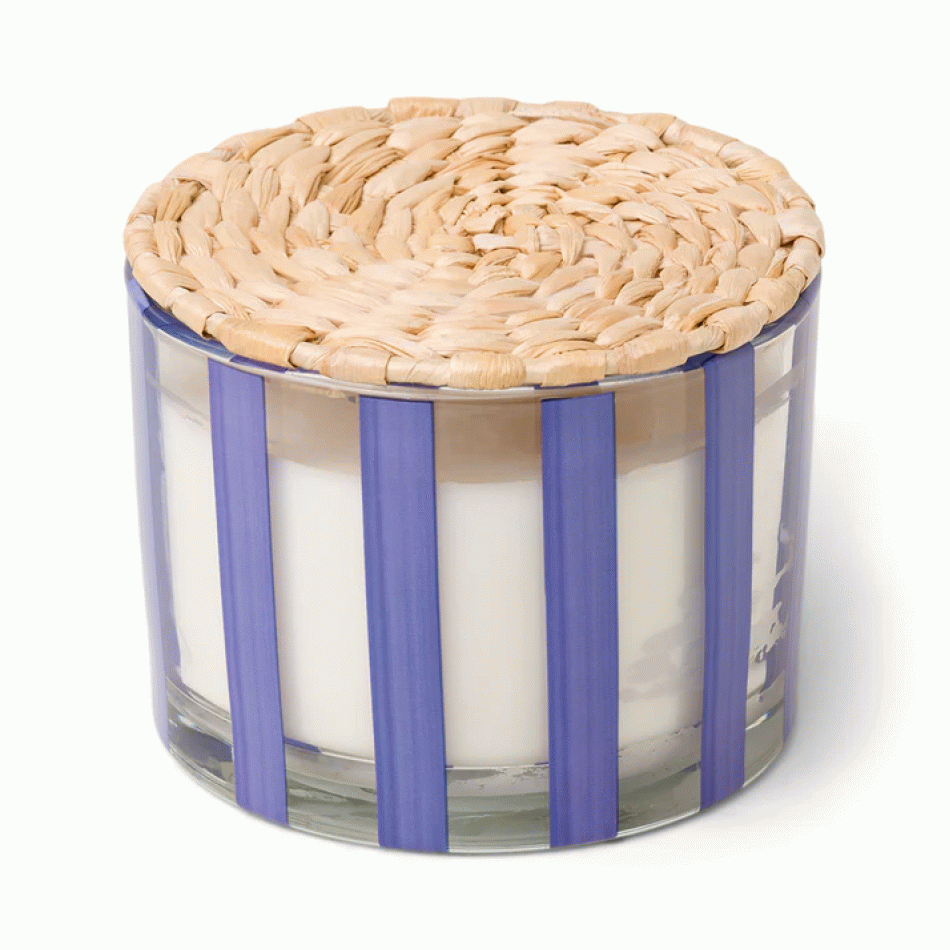 Ароматна соева свещ Падивакс Al Fresco - стъклена чаша на сини раета с капак - розмарин и морска сол