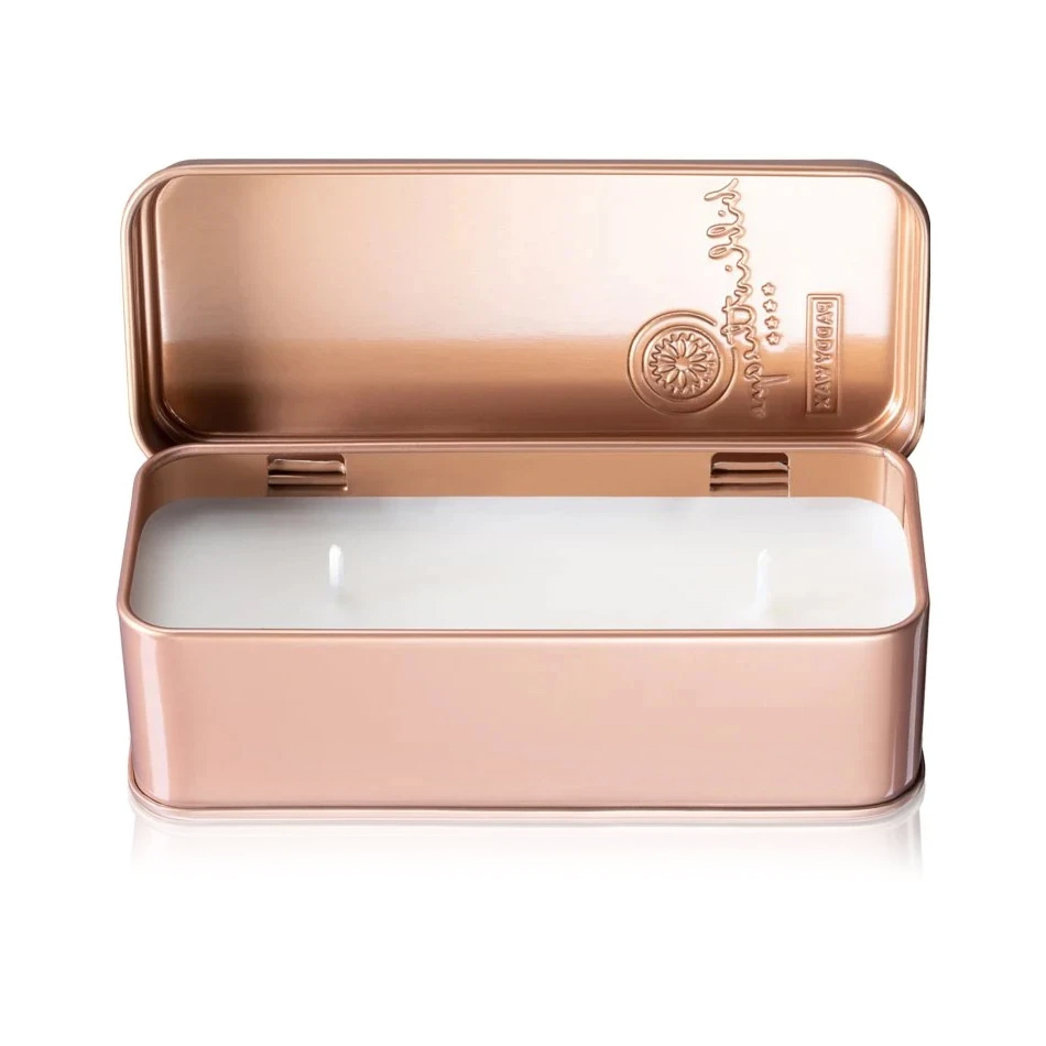 Свещта е с двоен фитил и е направена от соев восък с красиви аромати на папирус, палма и евкалипт, които са идеални за създаване на релаксираща атмосфера, където и да сте.