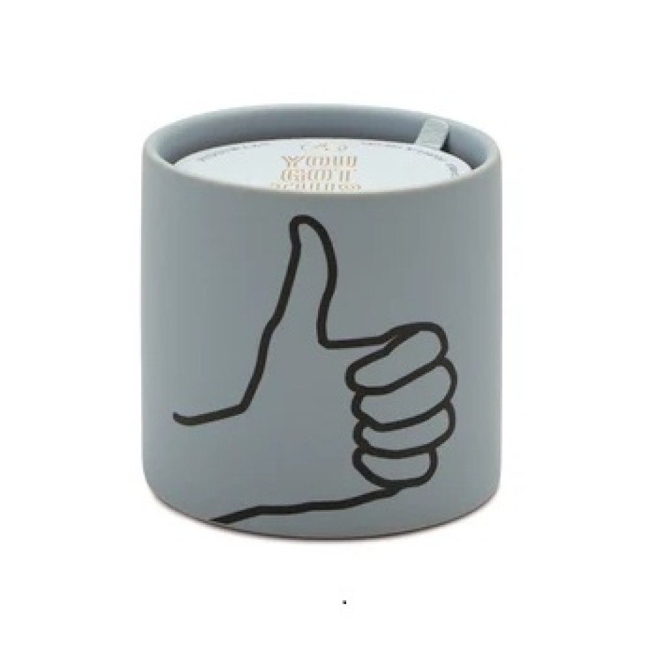 Копирайт: © Designworks Collective Compan Подарете на дома си стил и свежест с Керамична соева свещ Падивакс "Импресии - Подкрепям!" - синя - Листо от мента и кардамон от серията Impressions на Падивакс. Тази свещ е изработена от 100% соев восък и е снабдена с един памучен фитил, осигуряващ чисто и равномерно горене. С тегло 163 г и размери 8.6 × 8.6 × 8.3 мм, тя е представена в син матово-керамичен съд, украсен с илюстрация на ръка, показваща жеста „одобрение“. След като свещта изгори, съдът може да бъде използван повторно за саксия, канцеларски материали или малки предмети.