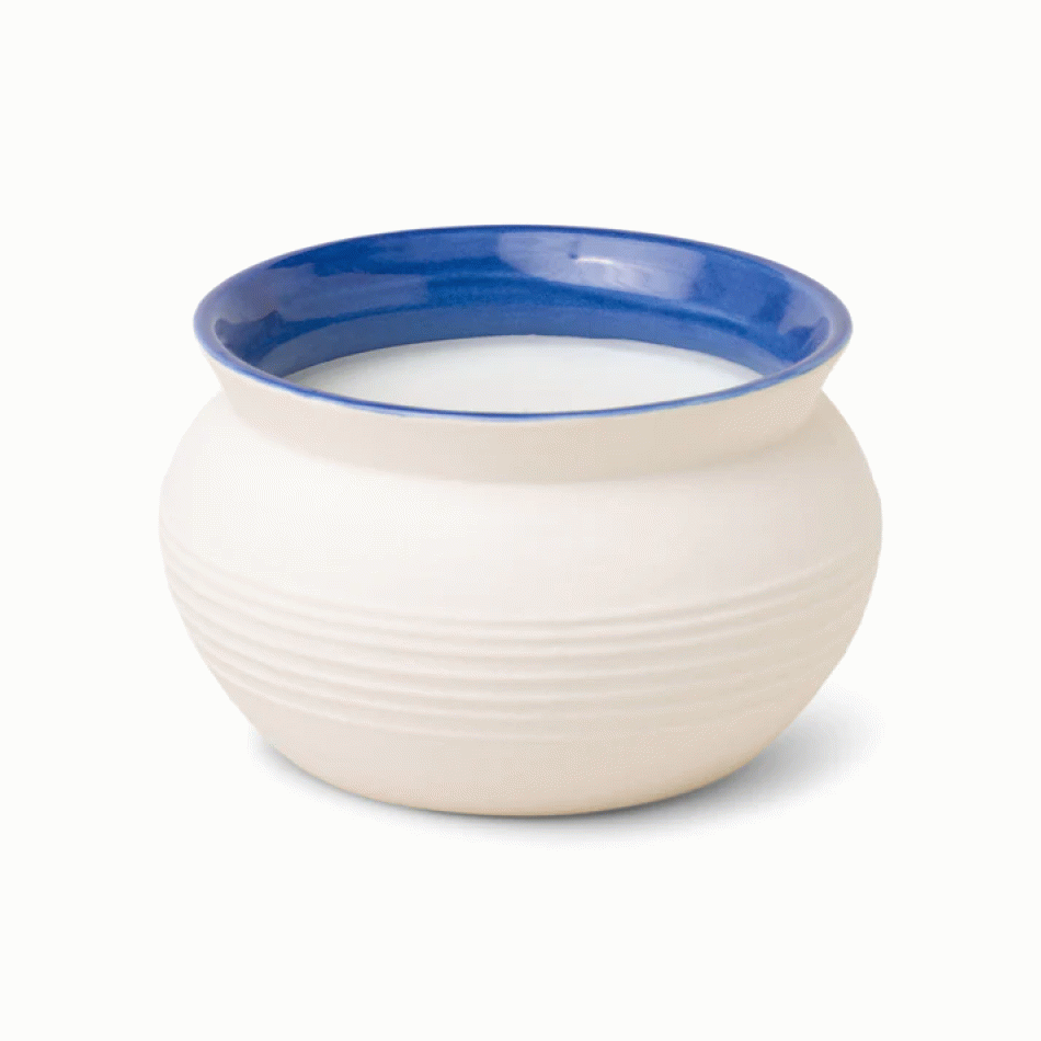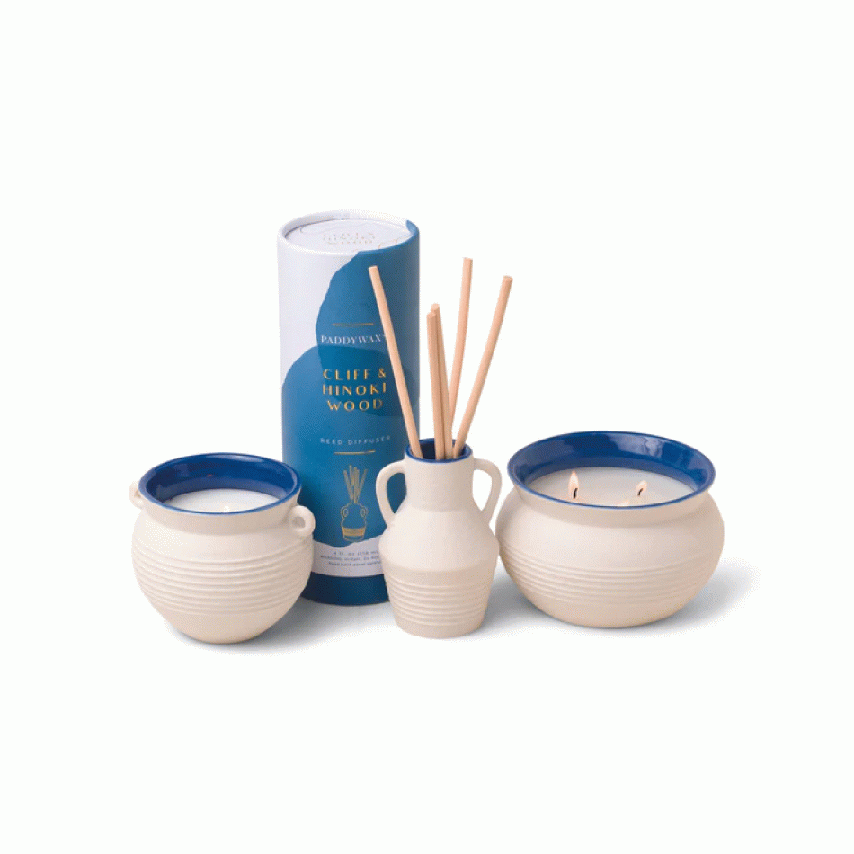 Керамична соева свещ Падивакс Санторини 368 гр – крем - скала и дърво хиноки