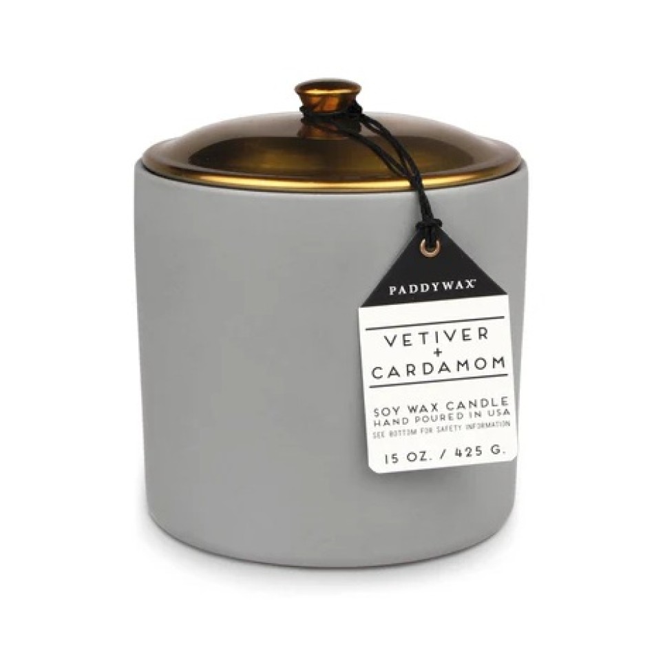Керамична соева свещ Падивакс, Hygge - сива - Ветивер и кардамон 425 гр.