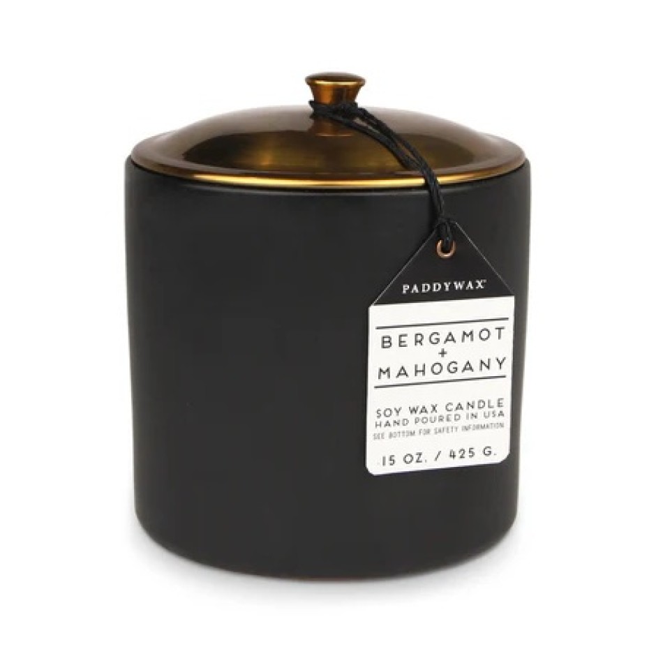 Керамична соева свещ Падивакс, Hygge - черна - Бергамот и махагон 425 гр.