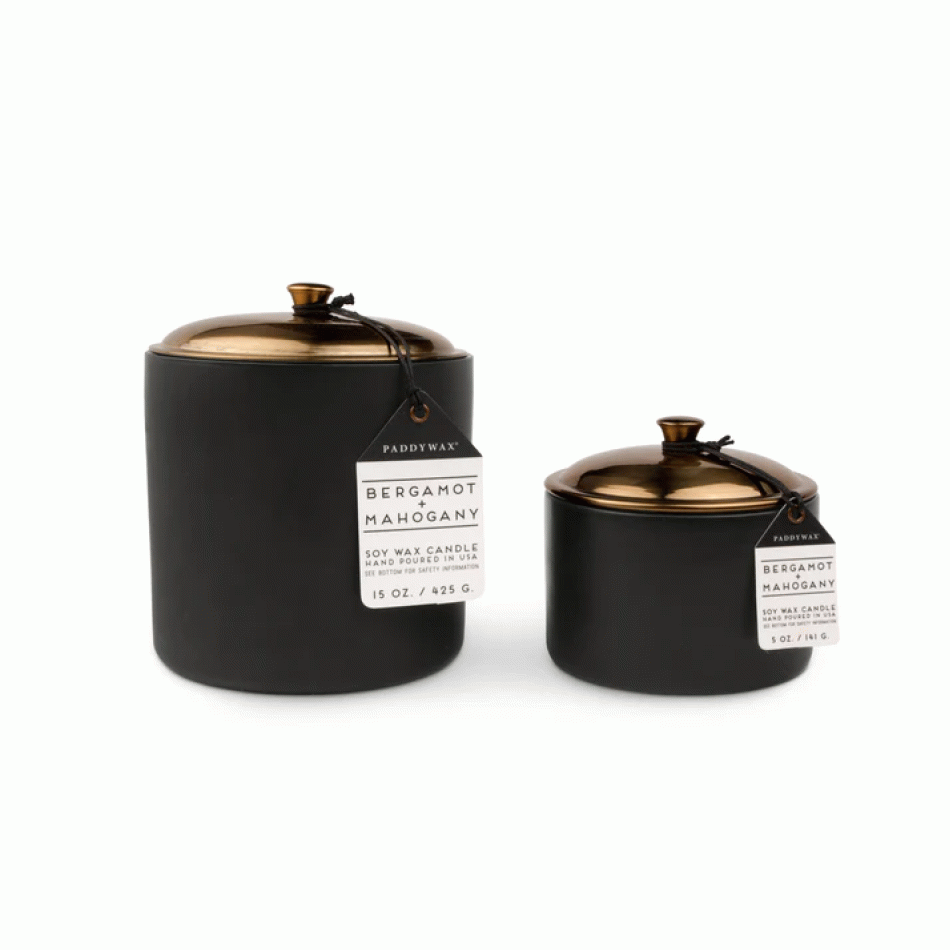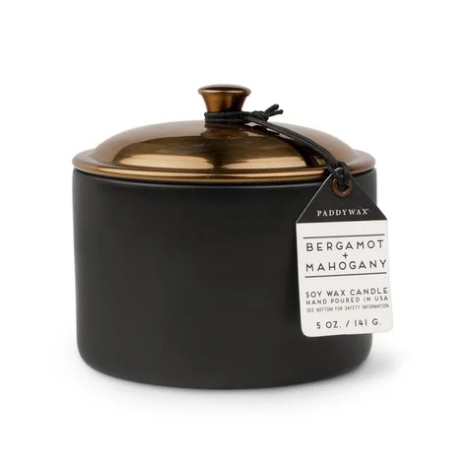 Керамична соева свещ Падивакс, Hygge - черна - Бергамот и махагон