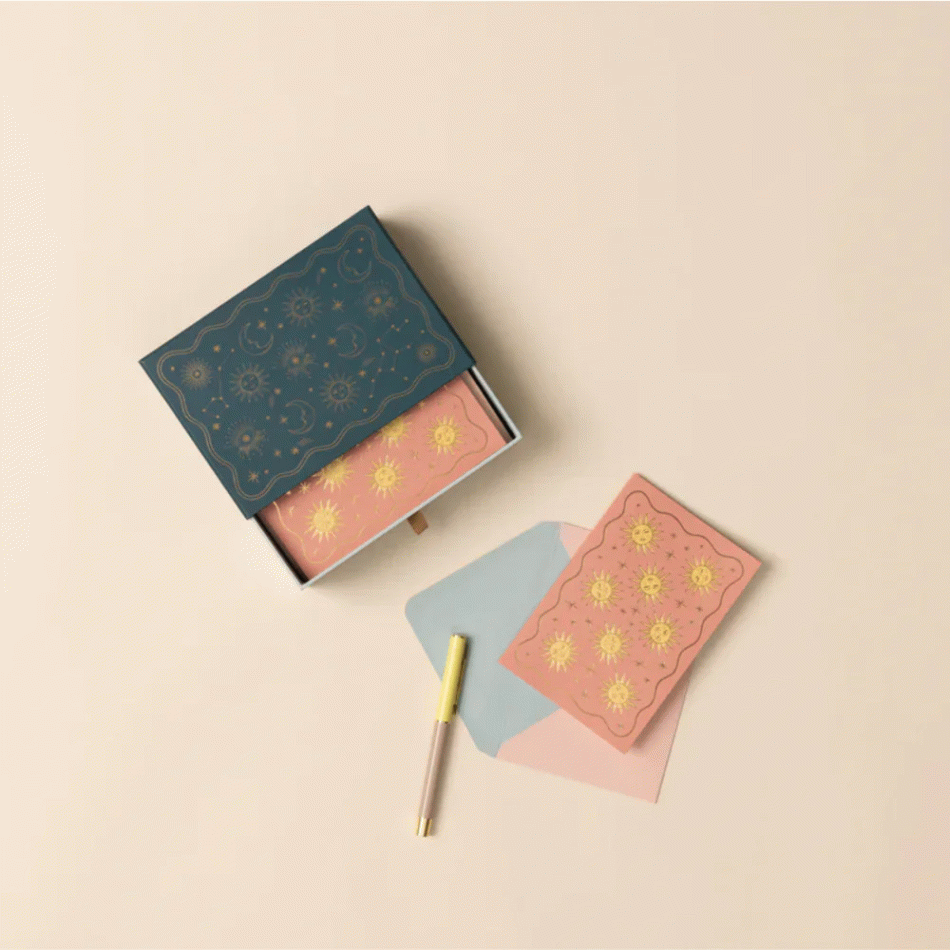 Копирайт: © Designworks Collective Company Комплектът от 16 Небесни картички за бележки е създаден за хора, които вярват, че всяко послание заслужава стилна рамка. Този изискан сет превръща дори най-краткия текст в елегантно изживяване, придавайки финес и индивидуалност на всяка написана дума. Перфектен избор за онези моменти, когато искате да оставите впечатление – дискретно, но запомнящо се.