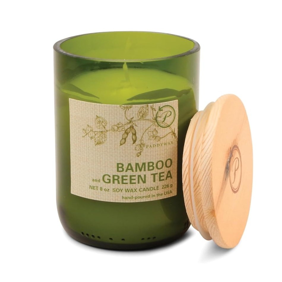 Соева свещ Падивакс в зелено рециклирано стъкло - Бамбук и зелен чай