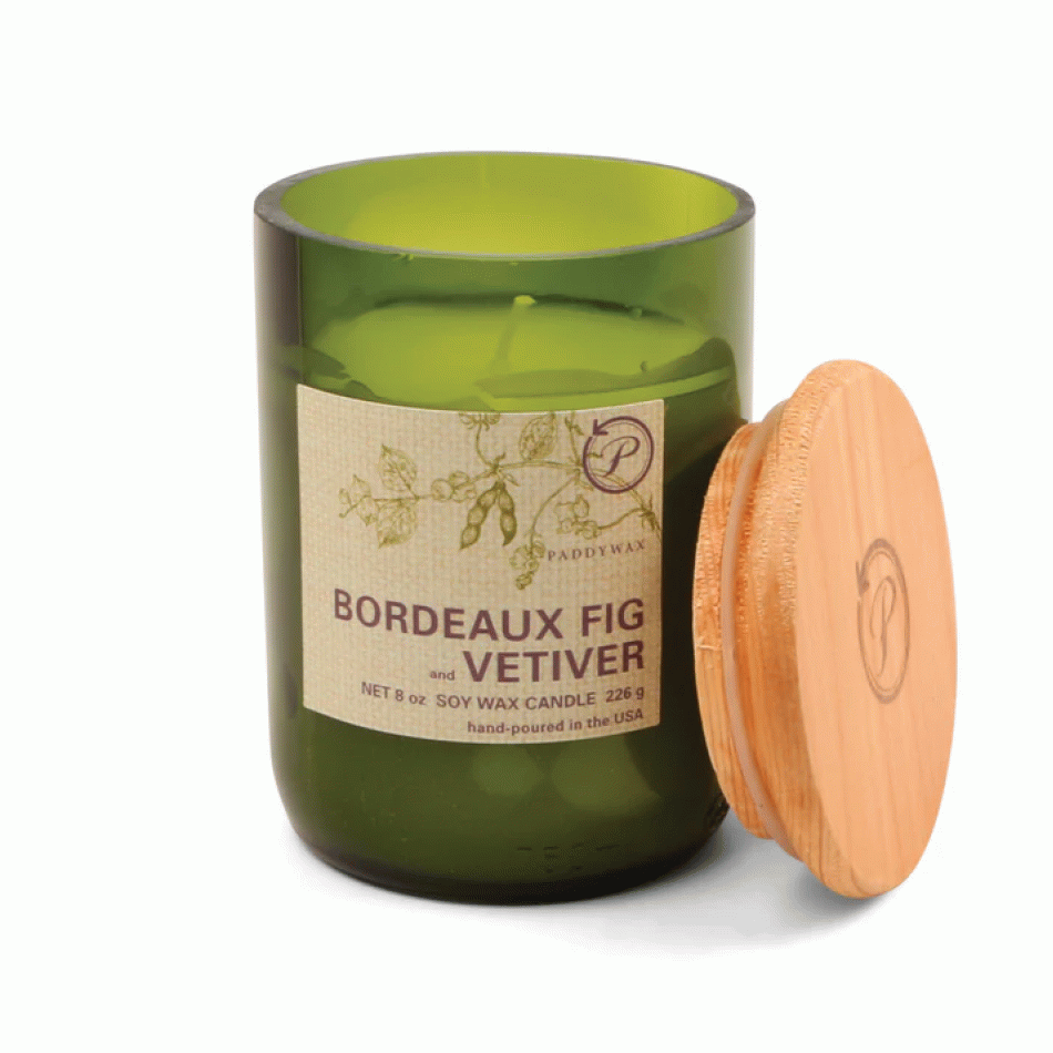 Соева свещ Падивакс в зелено рециклирано стъкло - Бордо смокиня и ветивер