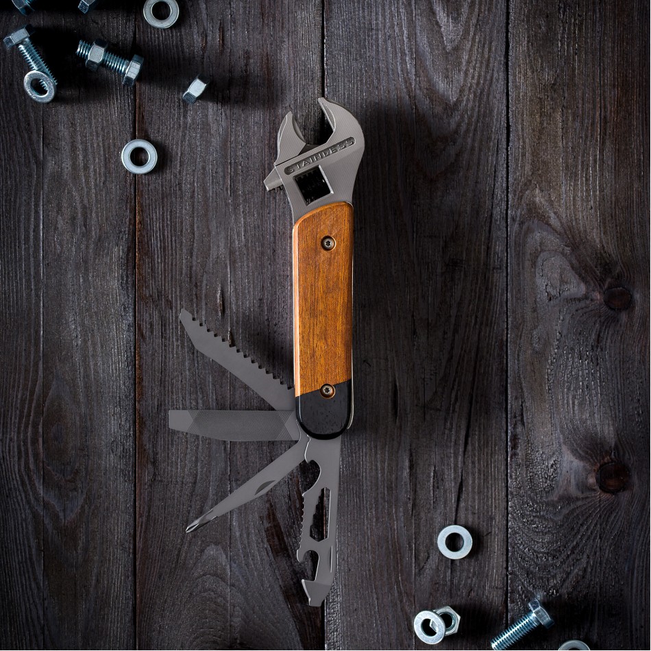 Копирайт: © Gentlemen's Hardware Global LLC - Колко пъти ви се е налагало да трябва да завиете или отвиете някоя малка гайка, разположена на най-неудобното място на света, в което нямате никакъв шанс да завъртите големия гаечен или френски ключ?Този красив мултифункционален инструмент, изработен от неръждаема стомана с елегантна дървена дръжка с гравиран надпис Gentalmen’s Hardware е перфектният подарък за всеки мъж, който умира от кеф да рови из колата, поправя колелото, спасява блока от наводнение и… изобщо е Супермен в дома ви. Черният байц и бронзовите нитове изграждат перфектния завършек на визията. Красив отвън и практичен отвътре, всеки от 9-те инструмента е с титаниево покритие и перфектно се прибира в изтънчената дръжка.Какво ще откриете вътре в брандираната кутия? Ето и пълния списък:Френски ключКръстата отверткаПилаНазъбен ножПрава отверткаОтварачка за консервиПет шестограма – 4-8 ммОтварачка за бутилки/консервиТрионАми, да видим какво има за поправяне днес?