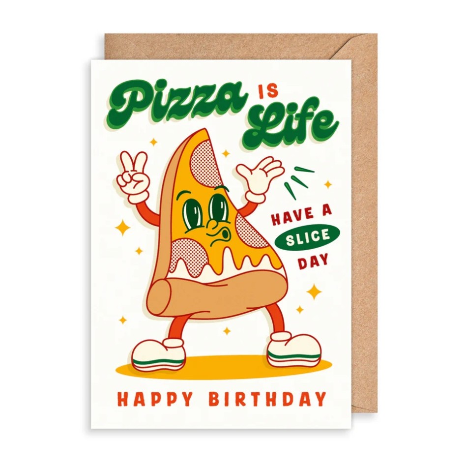 Създадена с внимание към детайла: дебос и висококачествен печат върху премиум матова картия. Отпред пише „Пицата е живот! Приятен ден за хапване. Честит рожден ден!“, а отвътре е празна за вашите най-топли и лични пожелания!