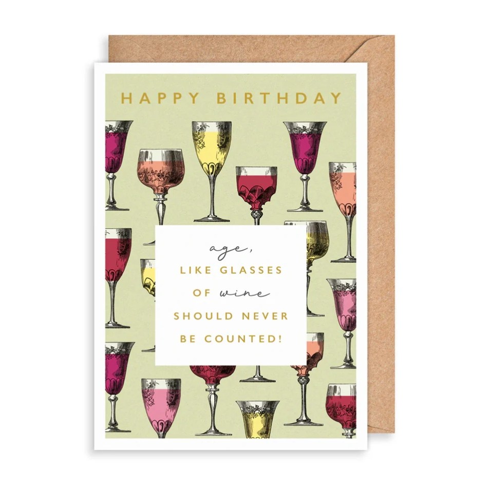 Създадена с внимание към детайла: деликатен дебос и луксозно златно фолио върху текстурирана хартия. Отпред пише „Възрастта, както и чашите вино, никога не бива да се броят!“, а отвътре е празна за вашите най-топли и лични пожелания!