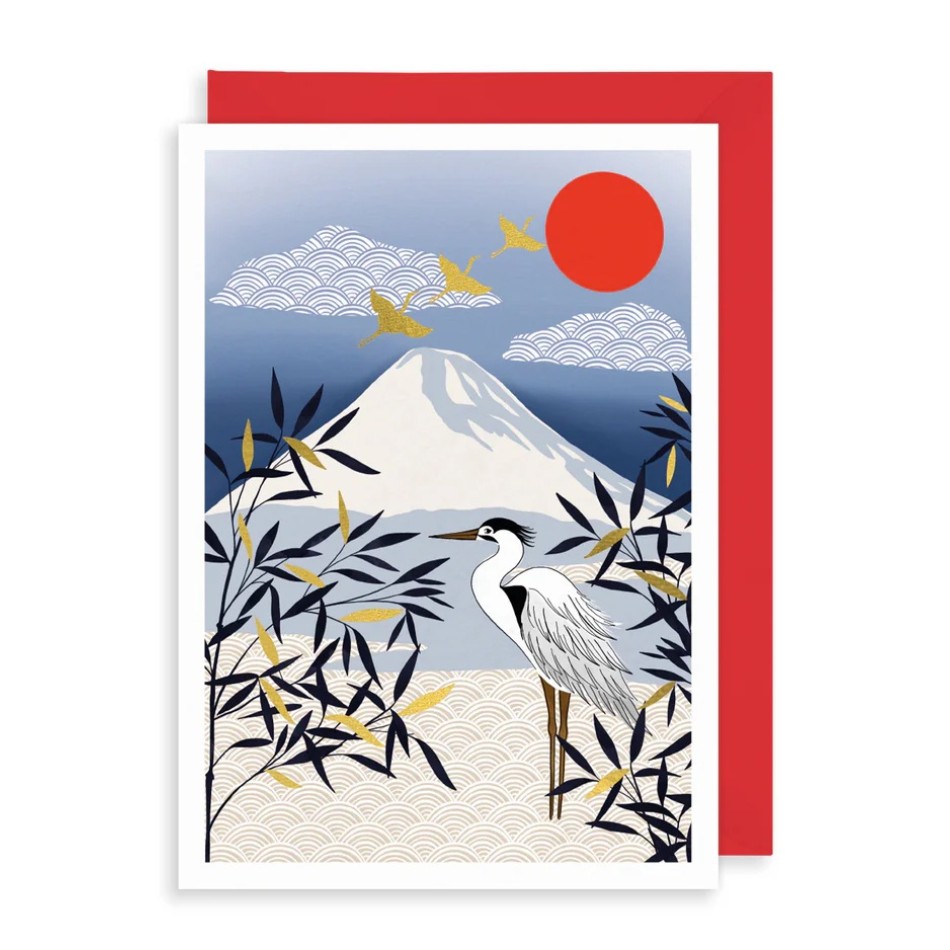 Копирайт: © The Art File Представяме Ви Поздравителна картичка - Планината Фуджи и щъркел – вдъхновен поздрав, който пренася спокойствието и величието на една от най-емблематичните природни забележителности в света. Със своя елегантен японски пейзаж и нежна флорална рамка, тя носи усещане за хармония, баланс и тихо възхищение към природата.