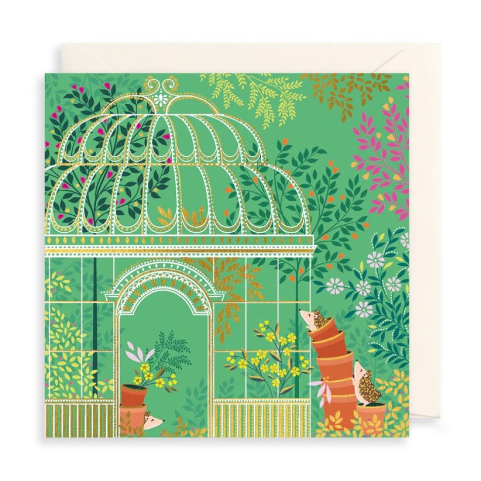 Поздравителна картичка - Таралежи и оранжерийна градина