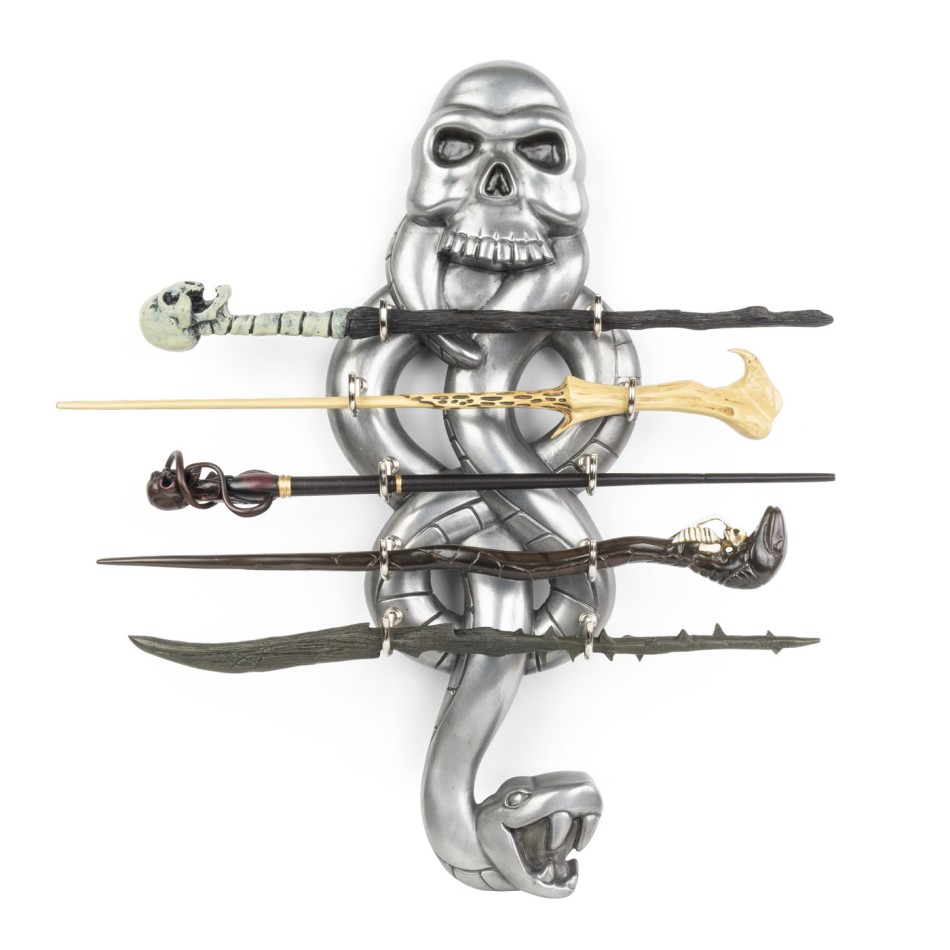 Представете си: детайлно изработен Dark Mark, който виси на стената като зловещ трофей, а петте пръчки – всяка с уникален, зловещ дизайн от черепи, змии и Волдемор – са подредени перфектно, готови за дуел или просто да плашат посетителите. Това е не просто колекция, а истинско изявление на тъмна лоялност – тежък, впечатляващ и пълен с детайли от филмите!