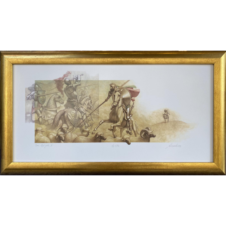 Репродукция-жикле на Ясен Гюзелев "Дон Кихот в битка" - РАМКИРАНА