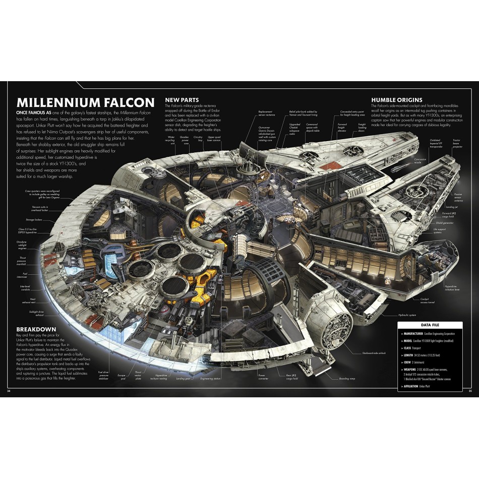 The main ships are explored and cutaway to reveal the armaments, propulsion systems, armor, control systems, and other key aspects of each vehicle, from Han Solo's Millennium Falcon to Darth Vader's TIE fighter.