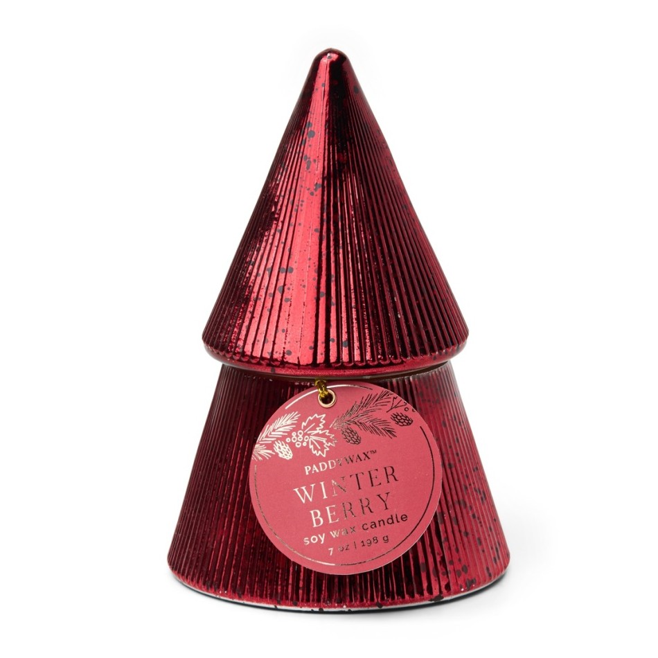 Копирайт: © Designworks Collective Company Ароматна соева свещ Падивакс, Зимно бери с капак - Червенo "стъпаловиднo дърво-елха"е празничен детайл с изискан характер – създадена да придаде уют, топлина и коледен дух на всяко пространство. Тя впечатлява с оригиналната си форма на стъклено, ребристо „наредено“ коледно дръвче, което придава декоративен акцент дори и когато не е запалена. А ароматът ѝ съчетава сочни плодови нотки и меки, уютни базови нюанси – идеално допълнение за зимни вечери с топла компания или като стилен подарък за празниците.