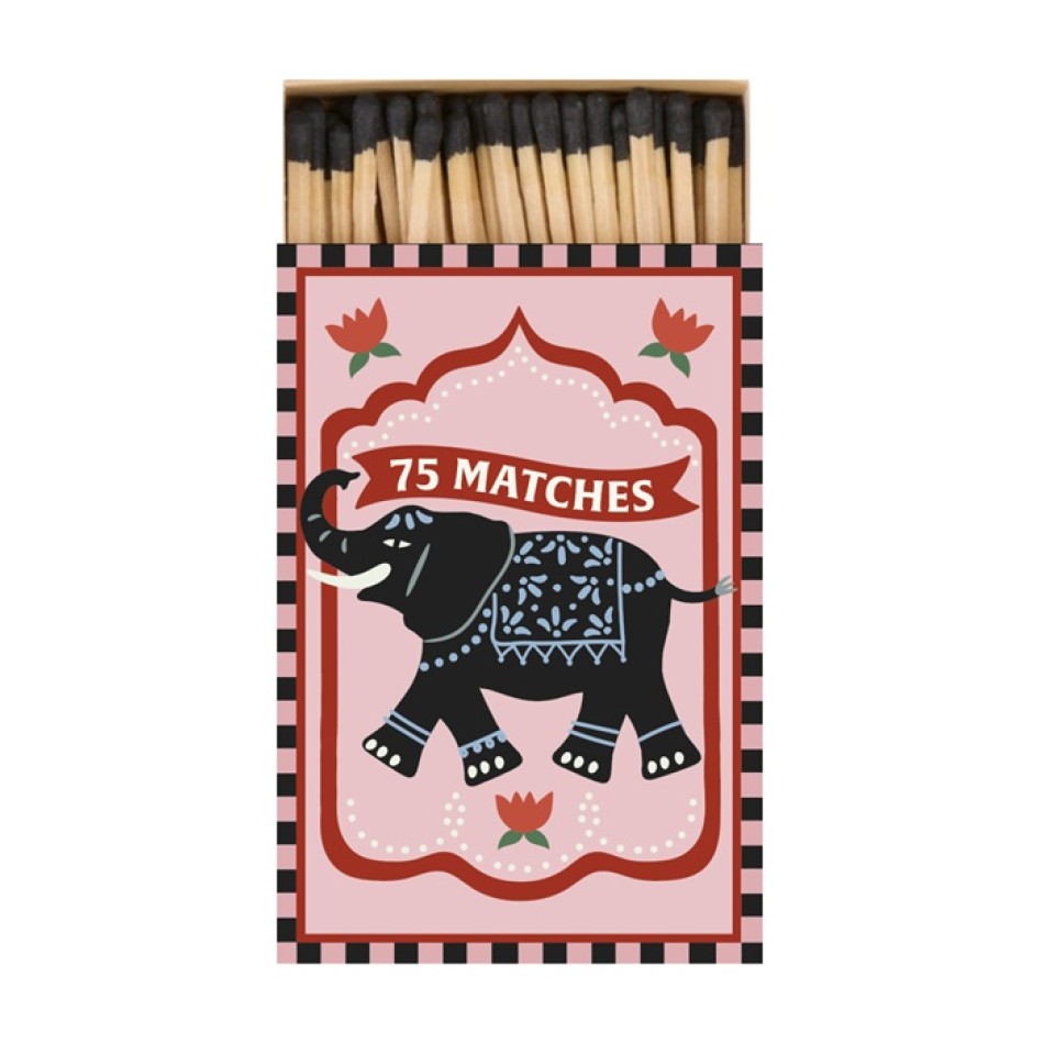 Със забавен, но сериозен мотив на слон в черно, кутията е като мини-скулптура – "Слонът знае пътя!" шепне тихо. Лесна за съхранение, с дълги клечки, които горят стабилно без мирис, тя е идеална за свещи, камини или романтични вечери. Добавете доза африкански чар към рутината си и се почувствайте като в сафари!