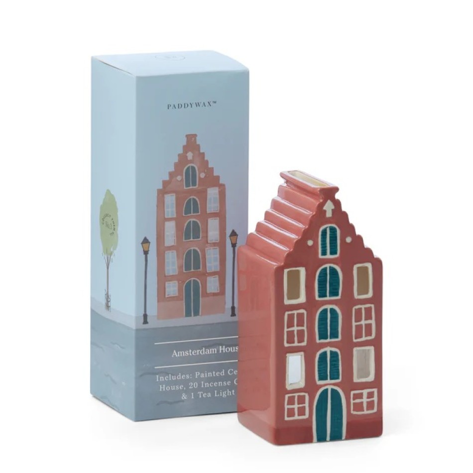 Комплект чаена свещ и керамичен ароматизатор Падивакс "Къща в Амстердам" - 20 конуса с аромат
