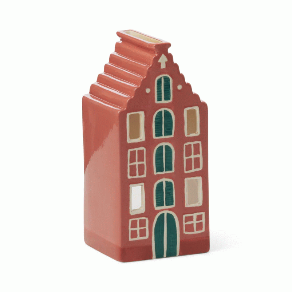 Копирайт: © Designworks Collective Company Потопете пространството си в очарованието на градската архитектура с Керамичен ароматизатор Падивакс "Къща в Амстердам" - 20 конуса с аромат - функционален и декоративен елемент, който комбинира изкуство и аромат. Той е част от серия, вдъхновена от каналните къщи на Амстердам, и изглежда като миниатюрна реплика, с характерна фасада, прозорци и комин, през който ароматният дим изпълва въздуха.