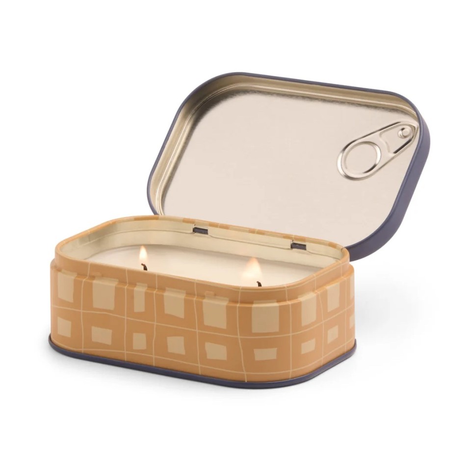 Свещта впечатлява с оригиналната си метална опаковка с илюстрации, вдъхновена от ретро консервени кутии. Ароматът е плодов и многопластов – свеж в началото, сочен в сърцевината и топъл в основата. Двата фитила осигуряват равномерно горене и по-интензивно ухание, което изпълва пространството с уют и финес.