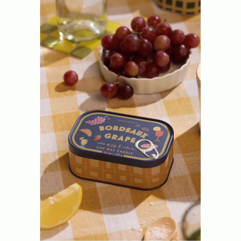Копирайт: © Designworks Collective Company Ароматната соева свещ Падивакс Bistro в консерва - Грозде е истинско гурме вдъхновение, събрано в стилна винтидж кутия. Създадена да пренесе атмосферата на уютно френско бистро във Вашия дом, тя съчетава артистичен дизайн и богата плодова композиция, която носи усещане за изисканост, топлина и леко сладко удоволствие.