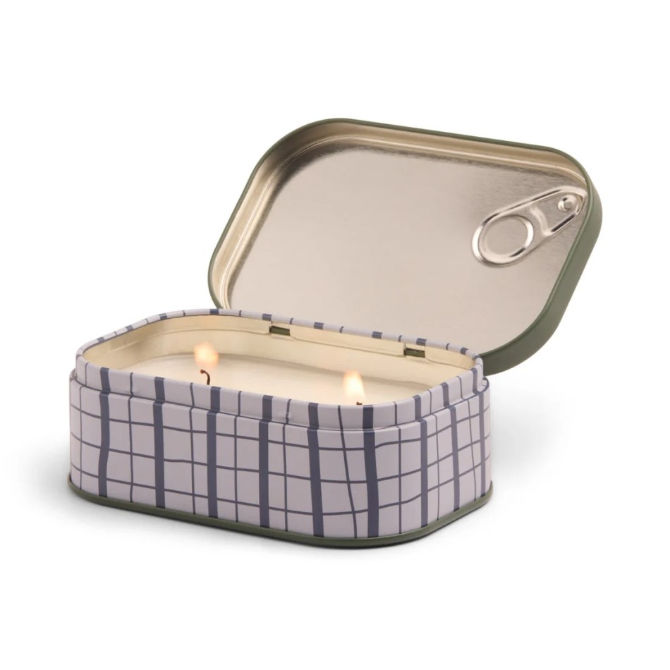Свещта впечатлява с артистичната си винтидж кутия, вдъхновена от класически консерви, и два фитила за равномерно и красиво горене. Ароматът е свеж, зелен и леко сладък – комбинация от маслинови листа и сочна смокиня, допълнени от дървесни и мускусни нюанси, които създават хармонична и успокояваща атмосфера.