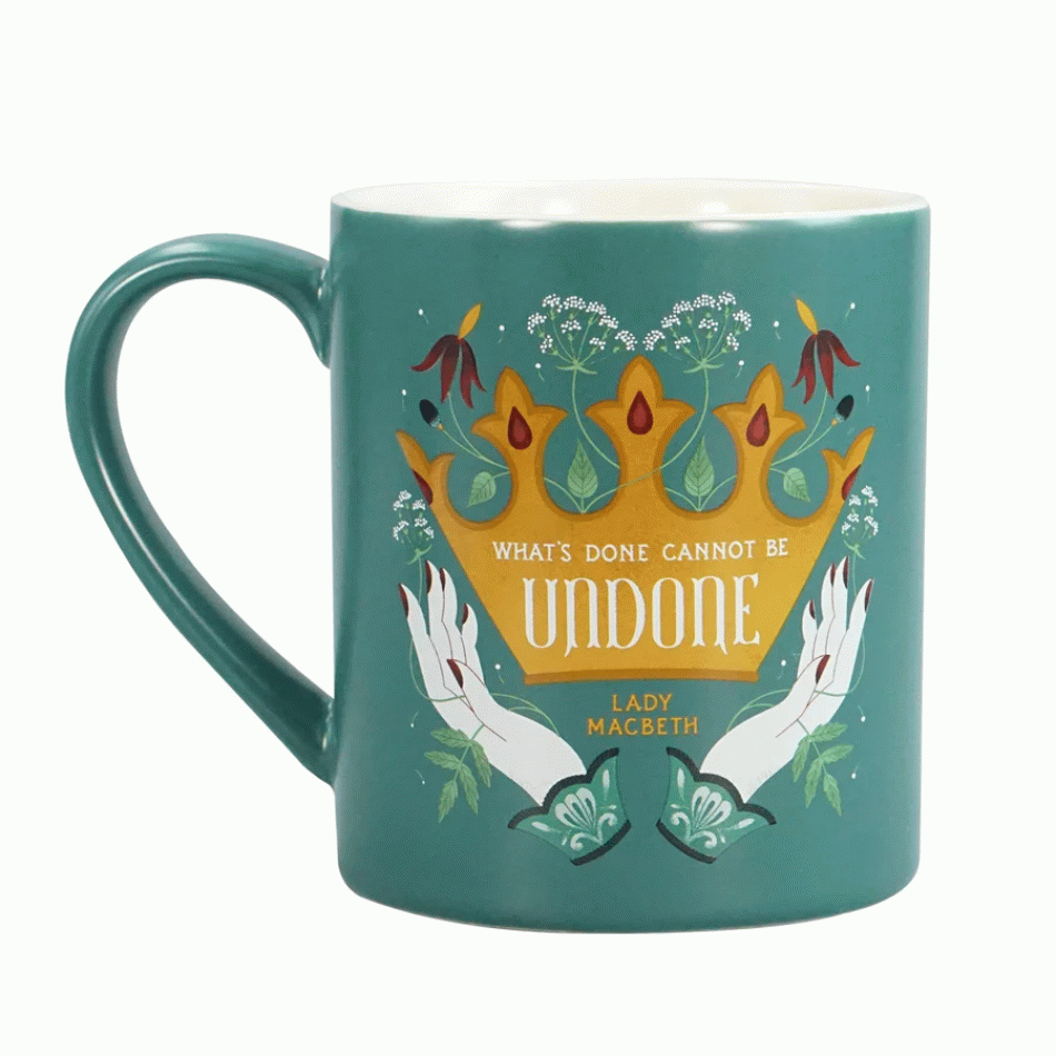 Официално лицензирани стоки на Уилям Шекспир от Half Moon Bay Потопете се в драматичния свят на Шекспир с тази магнетична зелена, керамична чаша! С мощния силует на Лейди Макбет и интригуващи литературни детайли, тя превръща всяка глътка в театрално преживяване, което ще събуди страстта ви към класическите трагедии и ще добави драматичен чар към всеки ваш миг на отмора.