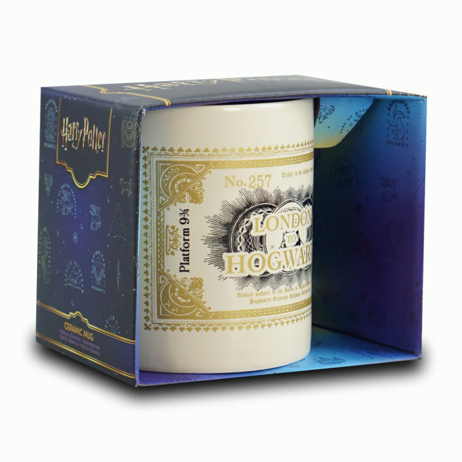 Копирайт: © & ™ Warner Bros. Entertainment Inc; Publishing rights © JKR Пътувайте с магия всеки ден – тази официално лицензирана керамична чаша Хари Потър, От Лондон до Хогуортс ви пренася директно на перон 9¾ и на борда на легендарния Хогуортс Експрес. Дизайнът е вдъхновен от класическия билет за влака от Лондон до Хогуортс, с автентични детайли, цветове и типографията на магическия билет, който отвежда поколения ученици към училището за магия и вълшебство. Всеки път, когато пиете от нея, ще усещате вълнението от началото на ново приключение.