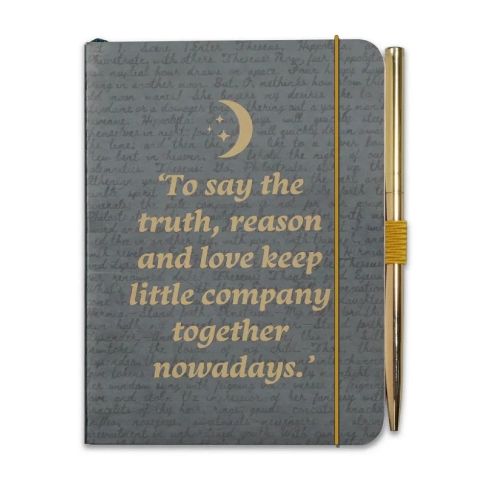 Официален лицензиран Шекспиров мерч – перфектният спътник за писатели, мечтатели и фенове на класиката. Идеален малък подарък, който вдъхновява на всяка страница! Корицата е украсена с цитата: "Да си кажем истината, разумът и любовта рядко дружат помежду си в наши дни."