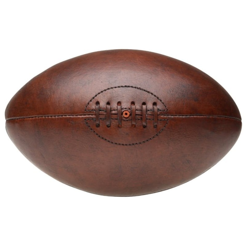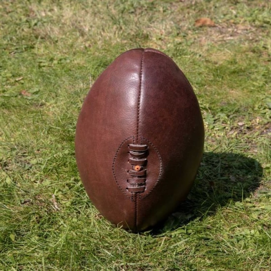 Върнете се в детството на ожулените колене и разбитите лакти с тази страхотна ретро ръгби топка. Изработена от висококачествен полиуретан, който наподобява естествения цвят и повърхност на кожата, тази топка е истинска реликва от миналото. Шита по ретро стандарт, но с модерен отвор за надуване с помпа и вътрешна гумена част. Шестте шева за изцяло декоративни, но придават допълнителен чар на нашето детство.