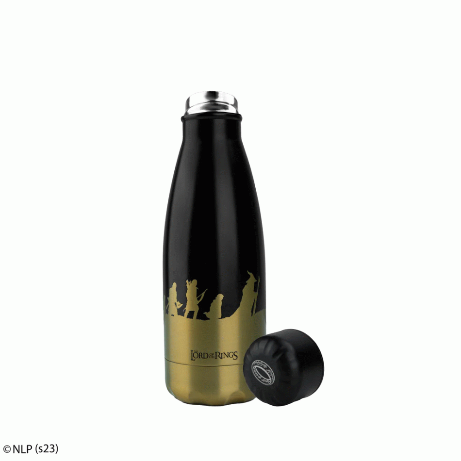 • Запазете напитката си с епичната сила на Средната земя с нашата официална Бутилка за вода - Задругата на пръстена, Властелинът на пръстените от Cinereplicas! Тази изотермична бутилка е истински трибют към легендарната Задруга на пръстена – с величествен златен дизайн, който улавя духа на приключението, братството и борбата срещу Саурон. Тя превръща всяка глътка в напомняне за пътя от Шиър до Мордор, добавяйки Толкинова магия, елегантност и доза епичност към ежедневието ви – идеална за фенове, които искат да носят частица от Средната земя навсякъде!