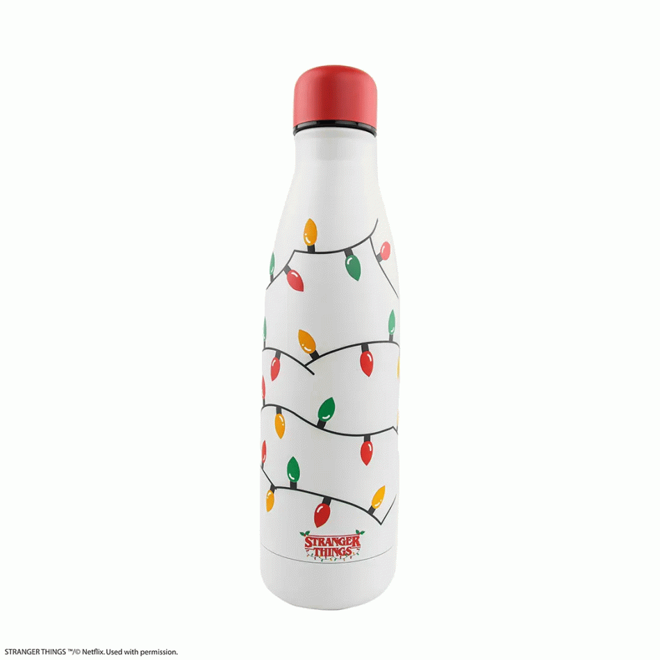 Изработена от висококачествена неръждаема стомана, здрава и изотермична (двойна стена), тя запазва напитките студени или горещи дълго време. С интегрирани светещи гирлянди (Christmas Lights дизайн), тя е не просто бутилка – тя е светещ аксесоар, който прави всяко пътуване, училище или работа по-вълнуващи. Официално лицензирана, с автентичен дизайн на гирляндите – супер стилна и практична за истински фенове!