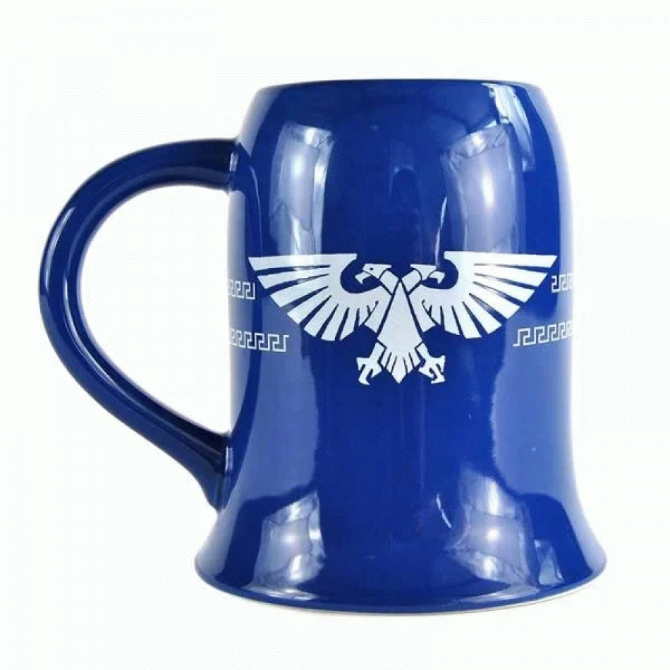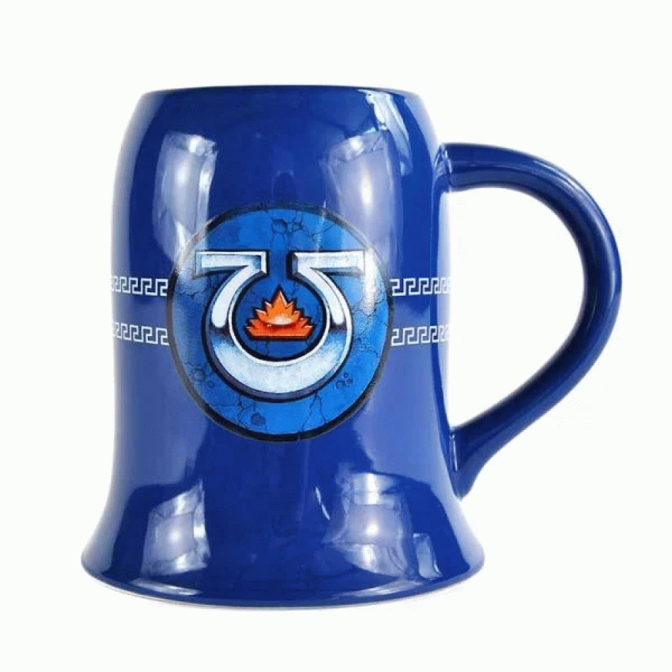 Тази халба е официално лицензирана, с автентичен дизайн на фракцията Ultramarines и символа Aquila. Изработена е от здрава керамика/stoneware и има обем 500 мл, което я прави подходяща както за напитки, така и за епични битки на масата.