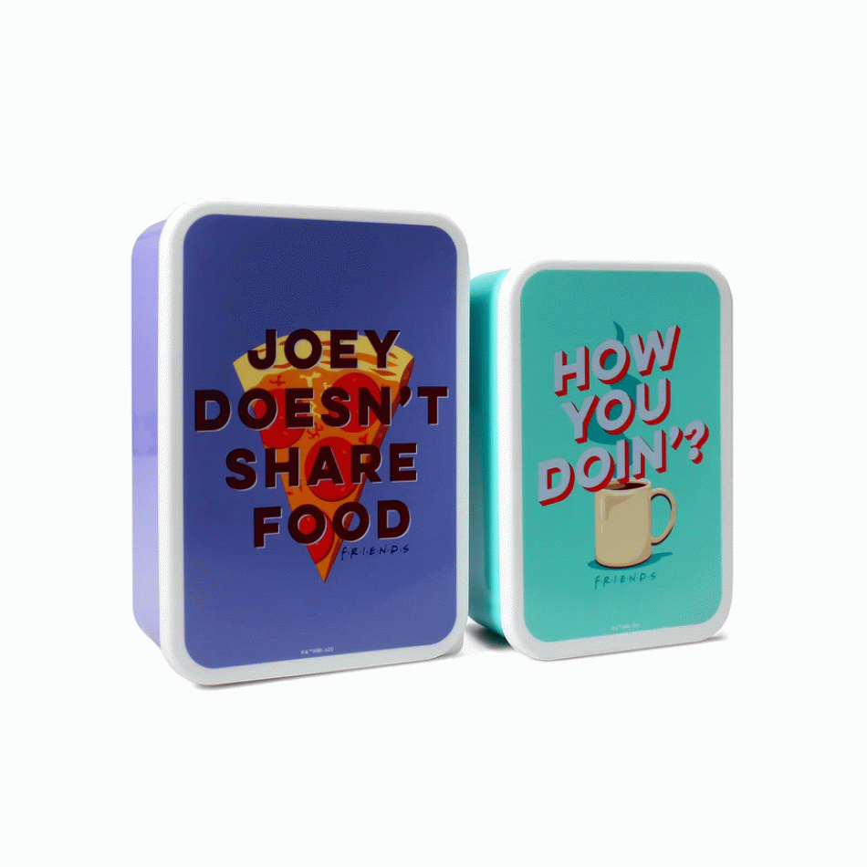 Копирайт: © Warner Bros Enternainment Inc. Представяме ви нашия комплект от две кутии за обяд "Приятели", вдъхновен от любимия телевизионен сериал. С тези практични и стилни кутии можете да носите обяда си със себе си, където и да отидете.