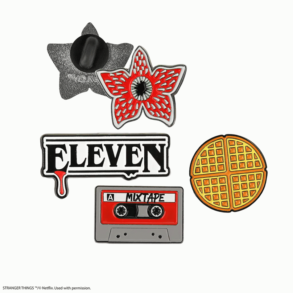 • Дизайни: Eggo вафла, „Eleven“, Demogorgon, касета (D&D)