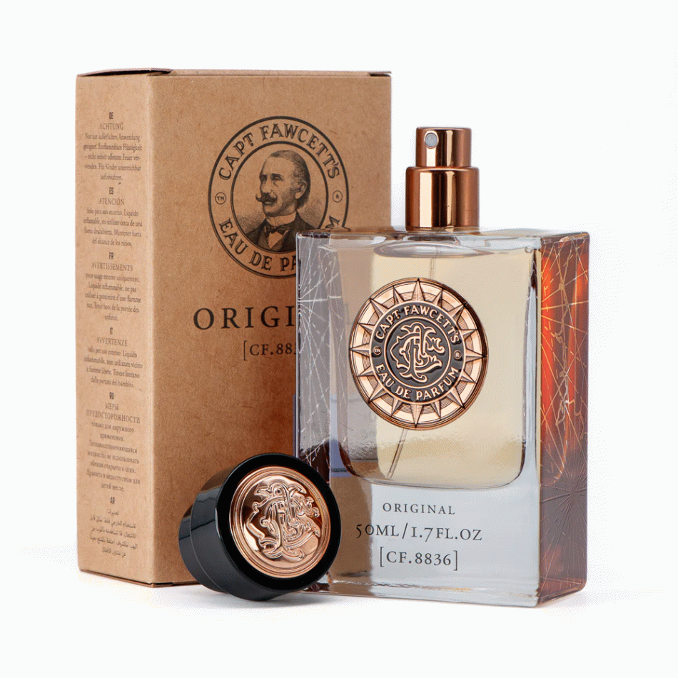 • Оригиналният парфюм Captain Fawcett’s Eau De Parfum е поместен в здрава стъклена бутилка тип „колба“ с пулверизатор-помпа, осигуряваща изключително прецизно разпръскване.
