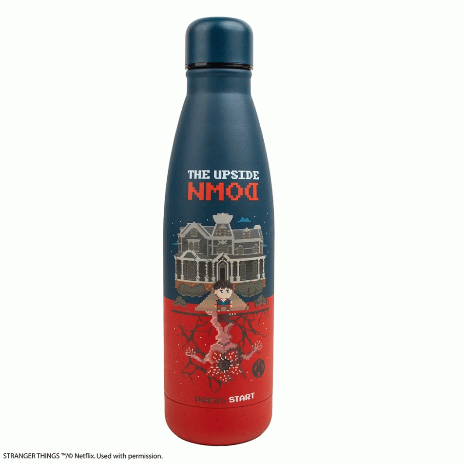 Изработена от висококачествена неръждаема стомана, с двойна изолация за дълготрайно запазване на температурата, лека и здрава – перфектна за училище, работа, фитнес или Hawkins експедиции. Официално лицензирана, с автентичен Pixelverse дизайн, който улавя ретро пиксел арт елементи от сериала – супер стилна и практична за всеки истински фен!