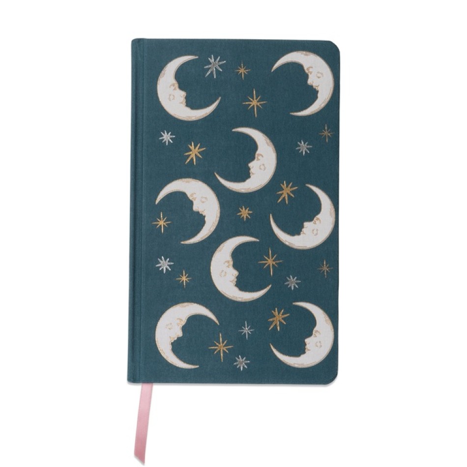 Представете си: луксозна корица в дълбок тюркоазено-син цвят с деликатен лунен мотив, който изглежда като истинско нощно небе – мек на допир, елегантен и леко светещ в полумрака, твърда подвързия за издръжливост и минималистичен дизайн, който пасва идеално на нощното шкафче, медитационния кът или в чантата. Вътре – премиум хартия, която кани да пишете бавно и осъзнато!