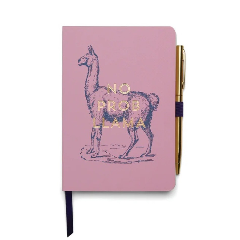 - Тефтер с химикалка А5 - Готината лама от DesignWorks Ink е забавен и стилен винтидж тефтер с мека на допир корица в нежнорозово, декорирана със златен надпис и илюстрация на лама. Тефтерът има 80 до 240 линовани страници (в зависимост от изданието), отпечатани с екологично соево мастило върху безкиселинна хартия. Шитата подвързия позволява плоско разгръщане, а панделката и ластикът улесняват ежедневната употреба. Комплектът включва елегантен златен химикал, който се закрепва сигурно в страничен клип – така винаги е под ръка. Перфектен подарък за учени, студенти или всеки, който обича да води записки със стил и усмивка.