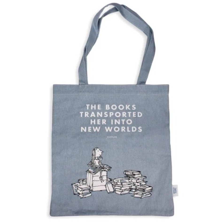 - Тази страхотна пазарска торба „Матилда“ от Роалд Дал е за умни, смели и стилни хора, които не се страхуват да носят книги… и зеленчуци! Изработена от устойчив памук и с вдъхновяващ цитат от самата Матилда, тя е перфектна за училище, библиотека или пазар. Дори госпожица Трънчбъл би се впечатлила!
