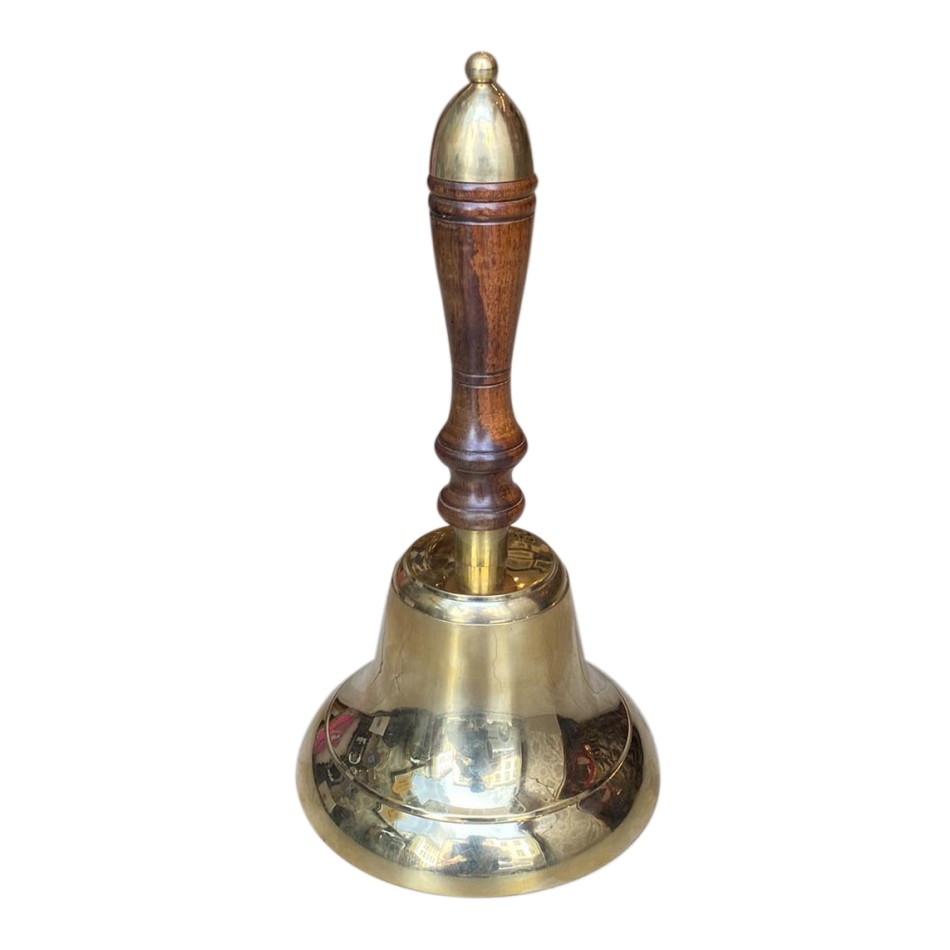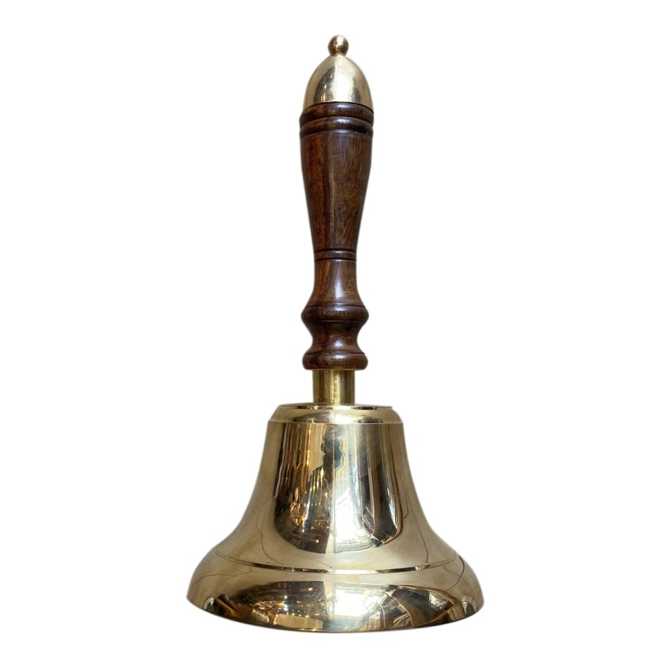 Тази камбана, която виждате е именно един от символите на детството - училищна масивна камбана, изработена от звънлив месинг и тежка дървена дръжка. Тази камбана е толкова винтидж, колкото и лъскава в днешно време. Комбинацията между дървена дръжка и месингово тяло едновременно придава усещане за масивност, тежест и елегантност. А звукът е просто удивителен.