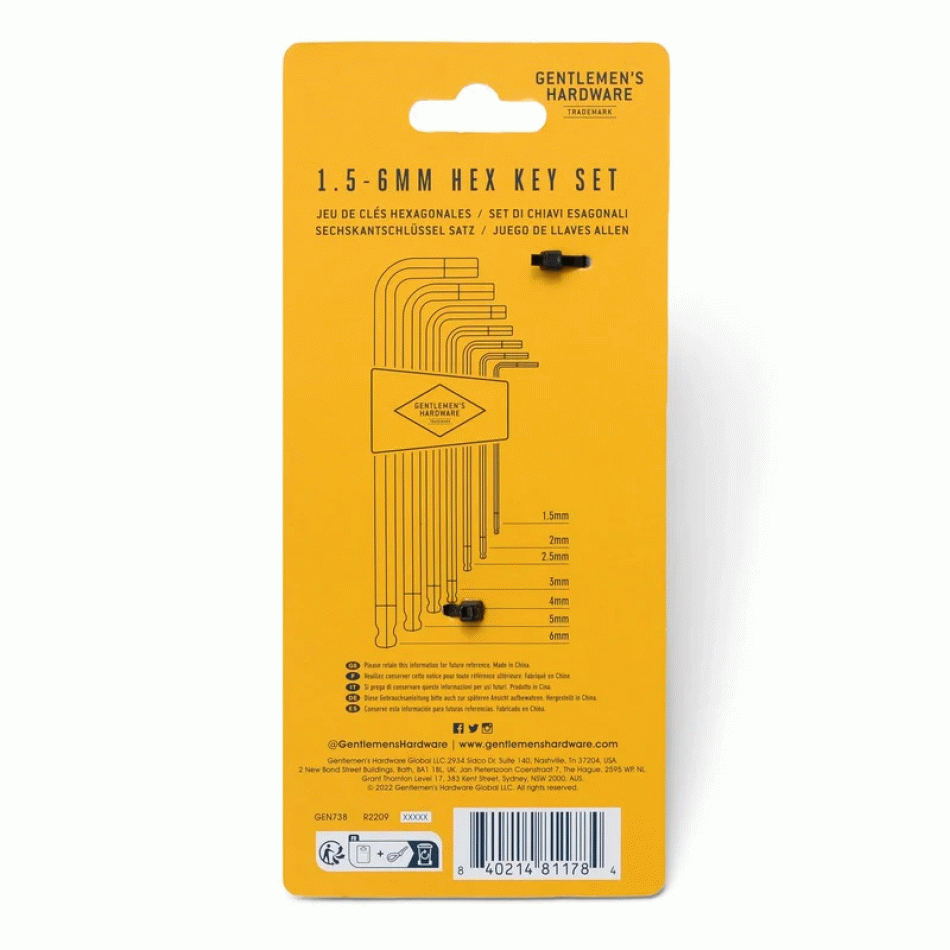 Копирайт: © Gentlemen's Hardware Global LLC Искате да добавите малко цвят в работата си? Този ярък и стилен комплект шестограмни ключове е точно за вас! Всеки ключ е лесен за намиране, благодарение на своята уникална цветова схема. Подходящ за всички любители на "правенето" и тези, които ценят подредеността и удобството. Комплектът включва всички основни размери, които ще ви помогнат да свършите работата бързо и ефективно.